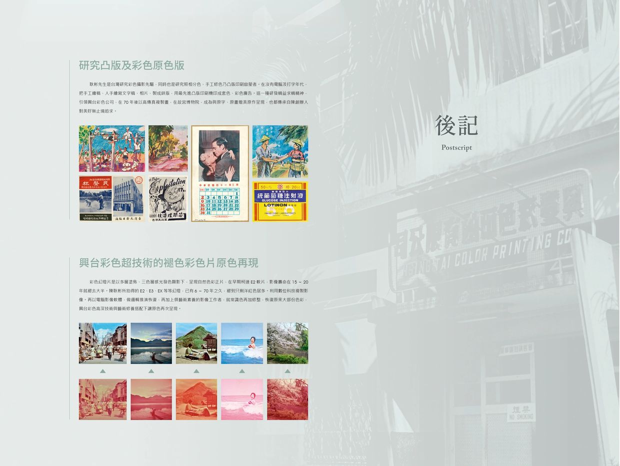1945 年創立興台照相製版處,至今興台彩色印刷公司已歷75 年成為頂尖印刷企業,在戰後以鄉土、風景攝影成為陳耿彬先生最大創作嗜好,不只足跡遍及全省,更與同好研究最早彩色片沖洗技術,1954 年與同好創立臺中攝影研究會、中部美術協會攝影部門創始會員。